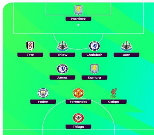 前锋:福登(曼城)、伊戈尔-蒂亚戈(布伦特福德)、加克波(利物浦)